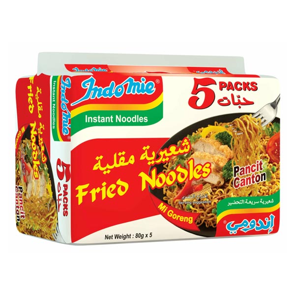 Instant Fried Indomie Noodles 4x5pkt. Quick-cook fried-style noodles with a rich savory flavor, perfect for snacks and meals.