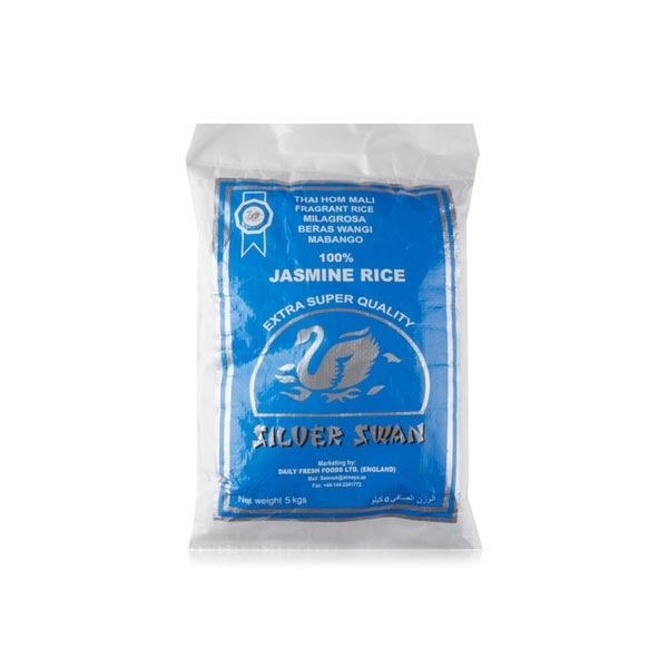 Silver Swan Jasmine Rice 5kg bag. Naturally fragrant rice with soft texture and rich taste, perfect for daily meals and special dishes.